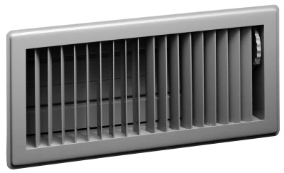 The Ameriflow Register 410 Series Floor Diffuser features all steel construction with heavy gauge, individually welded diffusion vanes. This sturdy floor diffuser is suitable for high traffic areas. A foot-operated dial control makes adjusting the airflow direction easy with multi-angle fin settings. Available in brown or white enamel finish.
